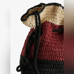 NEW with tags (NWT) Express Black, Tan, and BrownWoven Straw Drawstring Bag