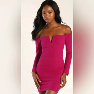 NEW with tags (NWT) Lulu’s Over the Swoon Magenta Off-the-Shoulder Bodycon Dress