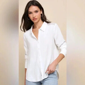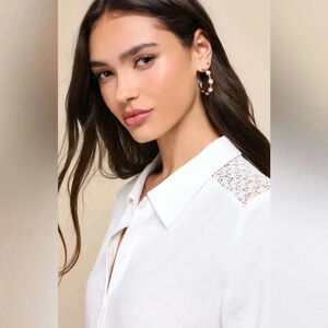 NEW with tags (NWT) Lulu’s Sophisticated Flair Ivory Crochet Lace Button-Up Top