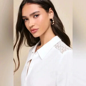 NEW with tags (NWT) Lulu’s Sophisticated Flair Ivory Crochet Lace Button-Up Top.