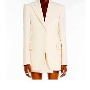Chic cream blazer with a tailored fit. Features notched lapels and button closure. Ideal for professional or casual wear.