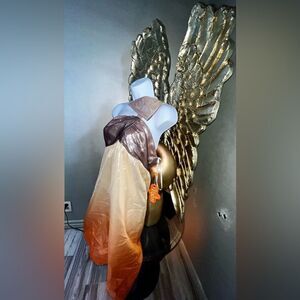 Gorgeous dress brand new metallic ombré size medium, 73% silk, 27% metallic for dress, 100% polyester for lining.