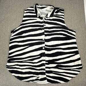 NEW without Tags Liz Claiborne Zebra Button Down Top Black White 2X Rayon Blouse