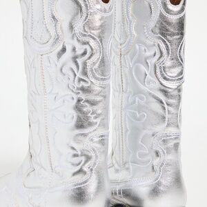 Never worn Ganni mid shaft western embroidered cowboy boots in chrome. These are so cute but I have really wide calves and don't like the way they look on me. I am a size 7.5 and they fit perfect.