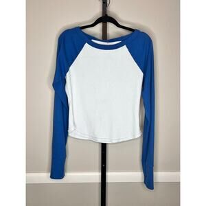 NEW without tag FREE PEOPLE Ribbed Boatneck Baseball Tee - Royal Combo S…