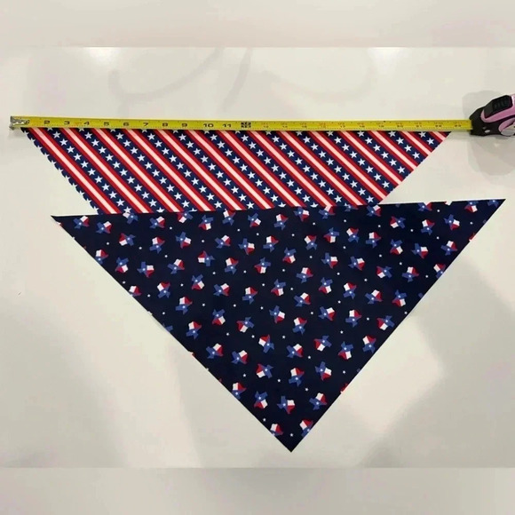 Upgrade your pup's style with our NEW without tag (NWOT) Dog Bandanna pack of 2! Made from high-quality fabric, these bandannas are perfect for any dog, big or small. With two different designs - one for everyday wear and one for special occasions - your furry friend will be the most stylish pup at the park. Not only do they look great, but our bandannas also provide protection from sun and wind, keeping your dog comfortable and happy. So why settle for a plain collar when you can add some fun and flair with our bandannas? Order now and make your dog stand out in a crowd!