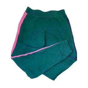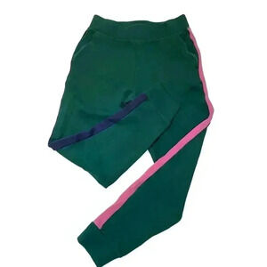 Forest green joggers with navy stripe on one leg and pink stripe down other leg. Brand new without tags. Addison Bay for Anthropologie. Ladies size small.