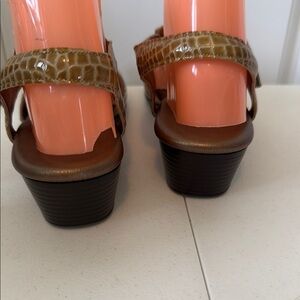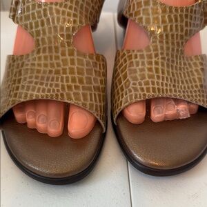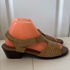 New without the Box - SAS embossed leather sandals (sz 8.5). The sandals have a hook & loop closure. The heel height is 1-1/2”. Please see all photos.