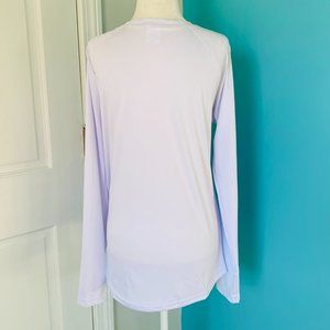Shirt length hits just below the hip to prevent riding up while active.