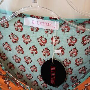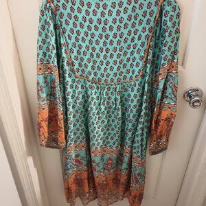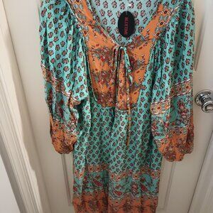 NEW with tags women's 2X boho peasant dress by Bluetime. Colors are aqua and gold/bronze. Very elegant. Smoke-free and pet-free home.
