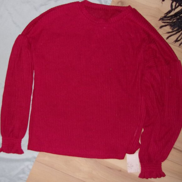 NEW womans Size large tee t long sleeved textured striped fabric soft has stretch to it elastic at cuffs