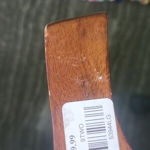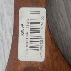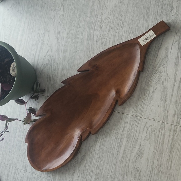 Brand new with tag solid wood feather shaped cutting board. Would make a great serving plattet, centerpiece, or decoration item, or use as a boho chic charcuterie board. Has some natural looking signs of wear but has never been used- could be polished easily, I have not done so to protect the NWT integrity.