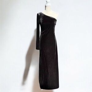 🌻NEW w.tag French Connection Black Velvet One Shoulder Maxi Dress Size 8