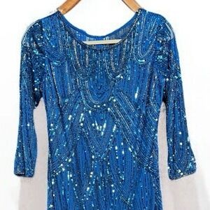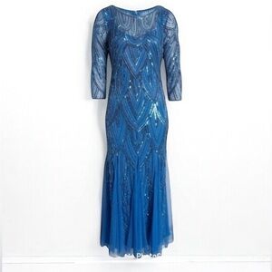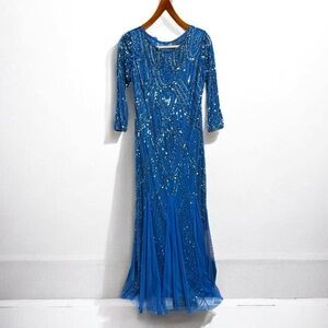 🌻NEW w.tag Pisarro Nights Illusion Sleeve Beaded A-Line Gown Size 2 {{flaw}}