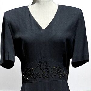 NEW (w/tag) VINTAGE Black Julian Taylor Big Shoulder Midi Dress 14