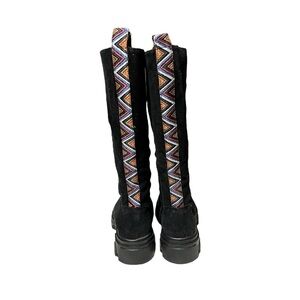 🌻NEW w.tags Farm Rio Long Black Fabric Platform Retro Boots US Size 7.5