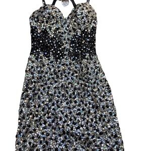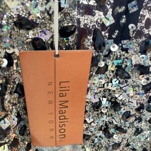 New w/tags Lila Madison New York Sequins Beads Black Silver Cocktail Party Dress