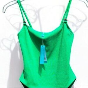 🌻NEW w.tags Melissa Odabash Palma Green Ridges One Piece Swimsuit US Size 6