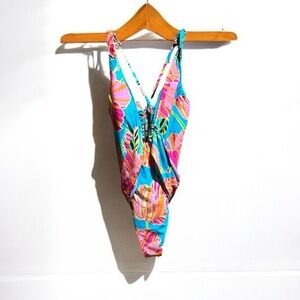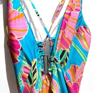 🌻NEW w/tags Trina Turk Poppy Belted Plunge Swimsuit Bathing Suit Size 12