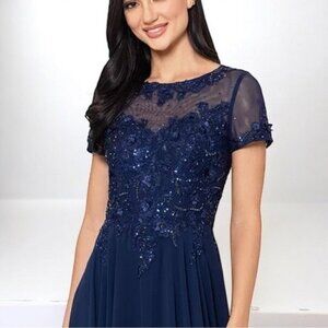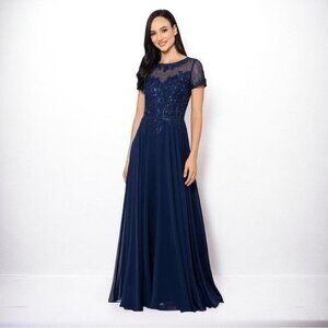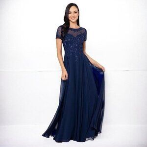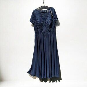 🌻NEW w/tags XSCAPE Navy Blue Boat-Neck Sequin Mesh Gown Women's Size 18