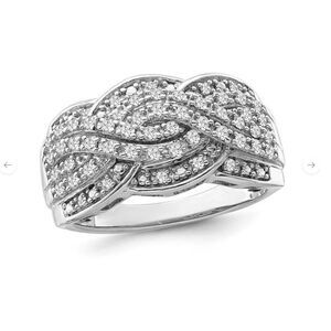 NEW~1/2 Carat Genuine Diamond Criss Cross Wave Design Ring Sz 8~Platinum