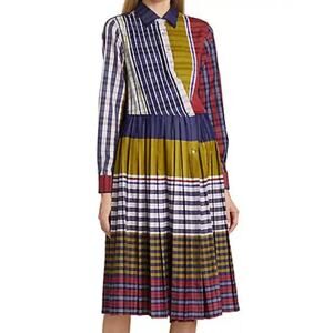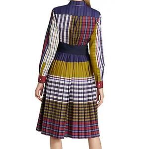NEW$1245 Sara Roka Helia Pleated Tartan Wool Blend Midi Shirt Dress