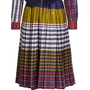 NEW$1245 Sara Roka Helia Pleated Tartan Wool Blend Midi Shirt Dress 46 (10) M-L