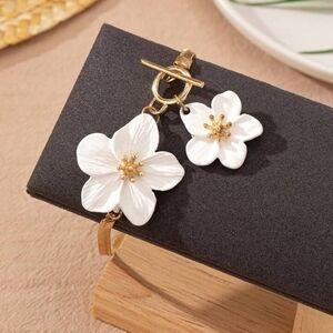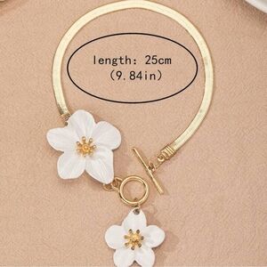 Chic 14K Gold platet Iron Alloy Anklet featuring delicate white flowers. Perfect for adding a touch of elegance.