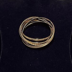 Look at this stunning 14 Karat gold plated bungle set! It has 6 pieces in different pattern, so beautiful! It is brand new with tag! Hurry up! It comes with the original jewelry box from Macys.