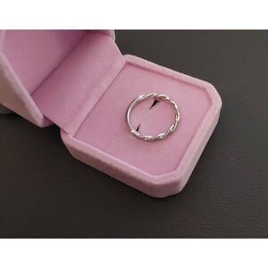 This beautiful band ring has just the right amount of oomph! Wear it stacked with other rings or as a bridal ring paired up with your engagement ring. A total of .15 carats of round cut genuine diamonds loop around each other for a stunning design. It is set in .925 solid sterling silver and is size 8. It is stamped for authenticity.