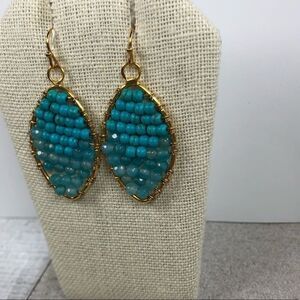 NEW 18k Turquoise blue beaded crystal earrings