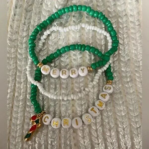 🆕 NEW-3pc Christmas Beaded Bracelet Charm Green Set🆕