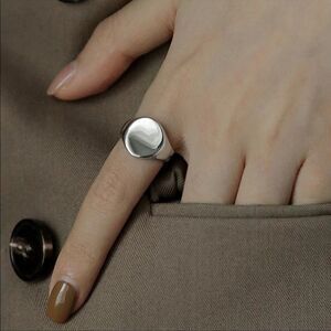 NEW 925 Silver Round Geometric Concave Open Ring Adjustable Ring