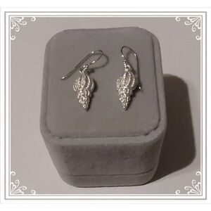 Gorgeous detailed Sterling Silver French Wire Dangle Earrings feature a diamond cut French tulip shell.