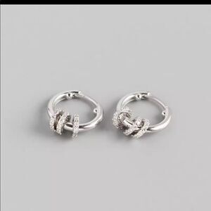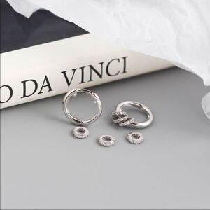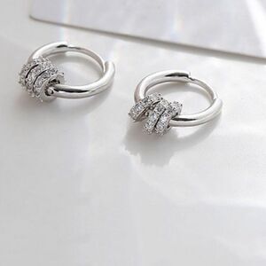 NEW 925 Sterling Silver Diamond Circle Hoops Earrings