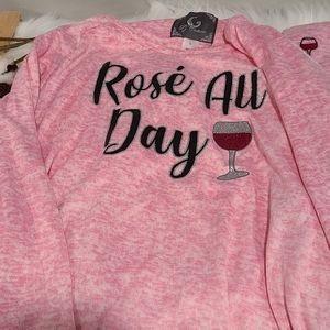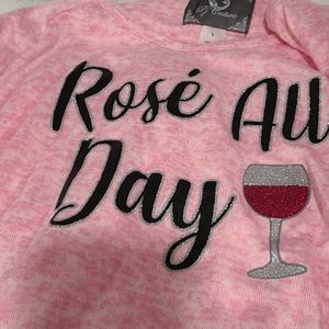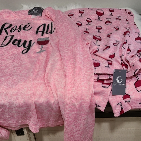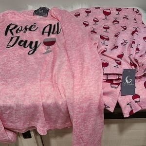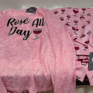 🍷🍷NEW🍷🍷ADORABLE!! ROSE' ALL DAY 2PC Pajama Set. Size L. Includes Shirt and Pants. Super Soft Material. Shirt is long sleeve. Pants have an elastic waist. Perfect PJ'S for all you WINE DRINKERS!! NWT🍷🍷