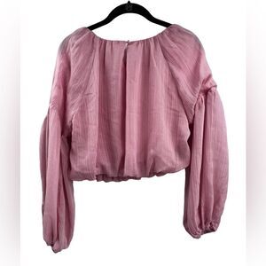 ASTR the Label Gauzy Puff Sleeve Crop Top Blouse Barbiecore Pink Size M NWT.