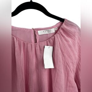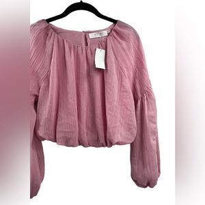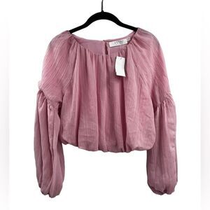 NEW ASTR The Label Pink puff Sleeve Crinkle Top