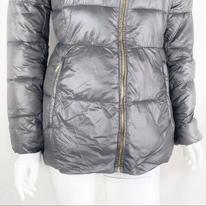 Brand new with tags. Never worn. An essential puffer jacket/coat. This authentic Michael Kors puffer is quilted with high quality gold hardware with logo. A gold Logo on right sleeve. Very warm, cozy, comfortable and ultra lite. This is super cute in shiny shimmery rock grey color.