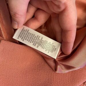 Mauve pink crepe sheath dress with ladder stitch embroidery detailing along waist and on arms. Bell sleeves. Lined. Hidden back zip. Pleated detailing along neckline. Perfect for a special occasion such as a party, wedding or even church. MSRP $119