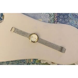 Brand new and never worn without original box. It features a beautiful genuine mother of Pearl dial accented with genuine diamond markers. Inside, a precision quartz battery powers the classic three hand indication. PLEASE NOTE: Due to storage in inventory, it will require a new battery to be installed.