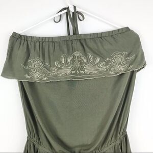 NEW Akualani Olive Green Sleeveless Halter Romper with Embroidery