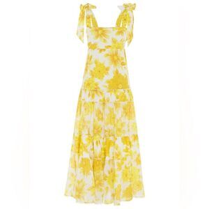 NEW Alemais Sonny Tiered Linen Midi Dress Size 6 (US) Lemon Yellow Floral
