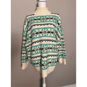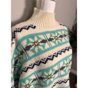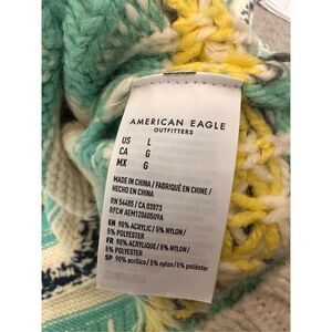 NEW American Eagle Multicolor Y2K Super Chunky Knit Oversized Winter Sweater Large blue cream yellow gray turquoise very soft and comfortable!