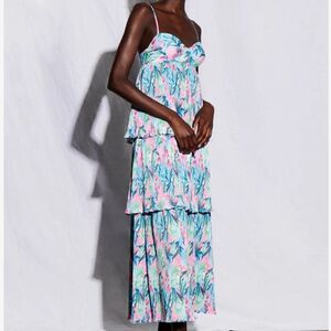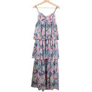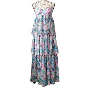 NEW Anthropologie Saylor Mauve Tropical Print, Tiered Pleated Dress in Size Medium