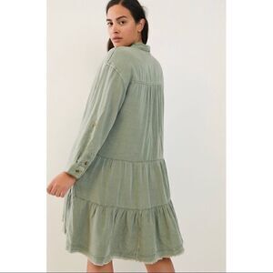 NEW Anthropologie Pilcro Deanne Moss Tiered Mini Button Front Shirtdress Large