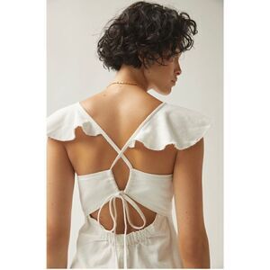 NEW Anthropologie Pilcro White Flutter Sleeve Gathered Waist Midi Dress Large