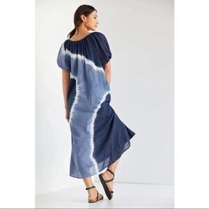 NEW Anthropologie Sundry Blue Embroidered Puff Sleeve Tie-Dye Midi Dress X-Small