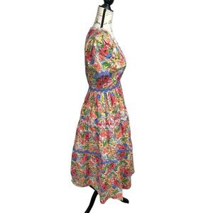 NEW Aureum Floral Print Cottage Core Rick Rack Trim Midi Dress, XS