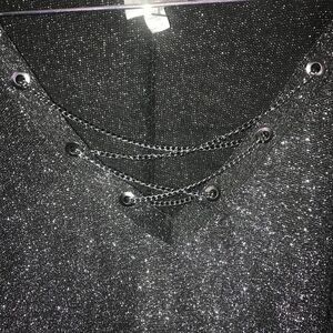 Avenue- Bell Sleeve, Chain detail with grommets,Dark Silver, MetallicTop.